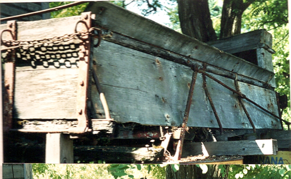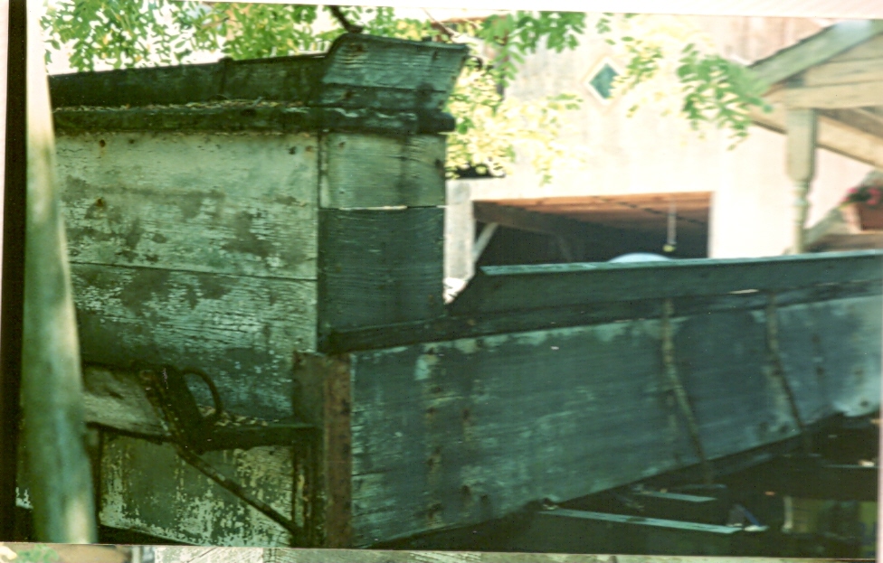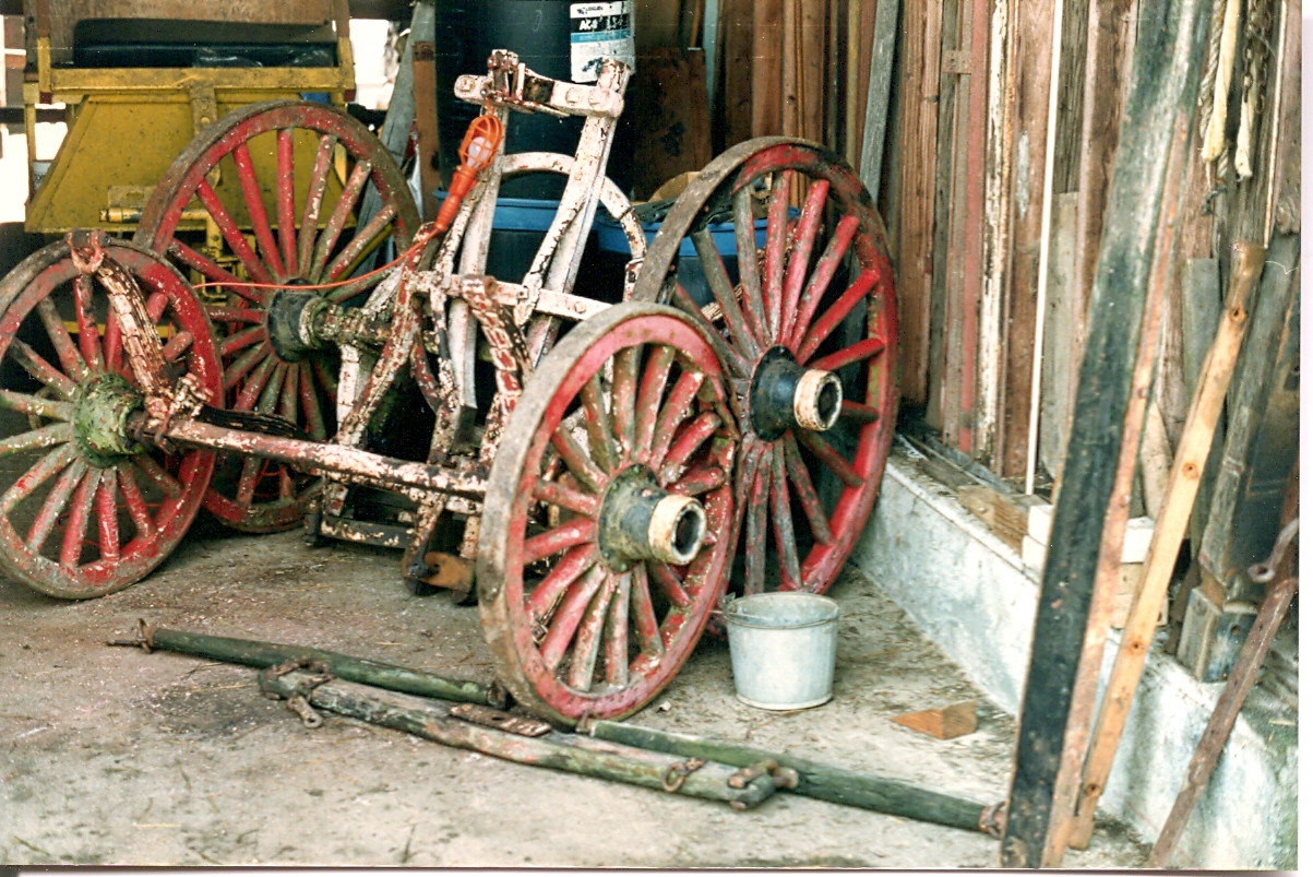 butcher who used it to deliver meat to the local stores until sometime in the 1950’s. Almost all the wood was rotten or soft. The only good wood was in the turntable assembly and the hubs of the wheels. All of the iron was good.